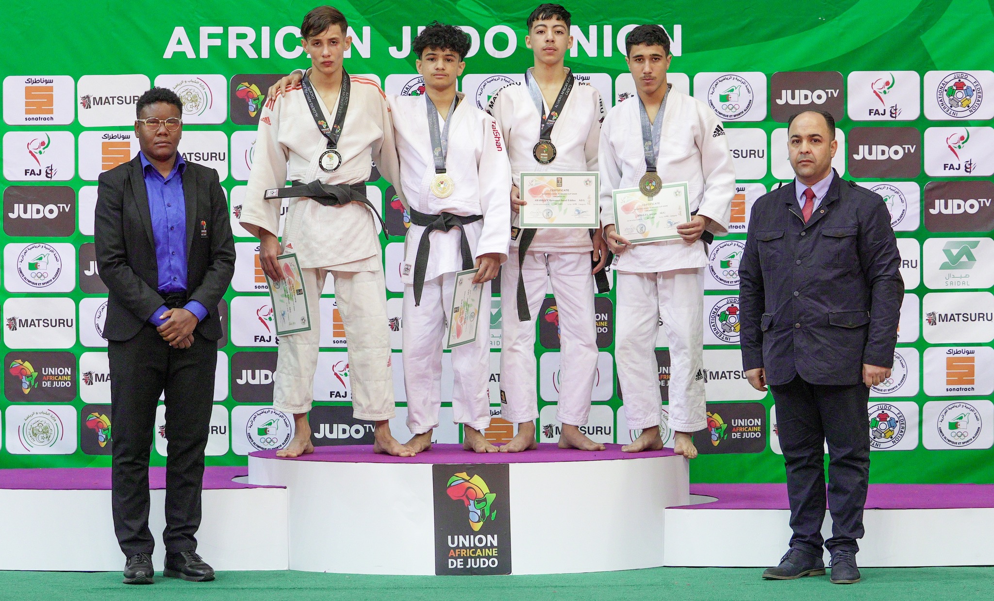 Les médailles d’or algériennes ont été l’œuvre de Sahraoui Ala-Eddine (-50 kg), Larbi Addad (-55 kg), Mohamed Amine Degouah (-60 kg), Laouad Mohamed Sadek (-66 kg), Oussama Laïb (-73 kg) et Zitouni Soheib (-81 kg) chez les garçons, ainsi que Bousebaâ Roufaida (-44 kg), Chaïbi Ranim (-52 kg), Dounia Berrahoual (-57 kg) et Dounia Adda (-70 kg) chez les filles.