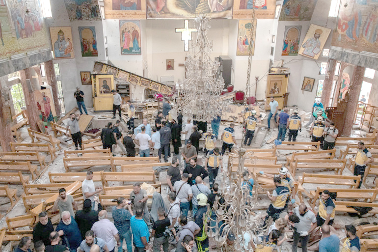 Un attentat suicide a fait au moins 22 morts dimanche dans une église de Damas, selon les autorités syriennes. Le ministère de l’Intérieur a affirmé qu’un “assaillant suicide affilié au groupe terroriste Daech est entré dans l’église Saint-Elie, dans le quartier de Dwelaa à Damas, a ouvert le feu et s’est fait exploser avec une ceinture explosive”. Selon un nouveau bilan du ministère de la Santé, cité par l’agence de presse Sana, l’attentat a fait 22 morts et 63 blessés. Pour le ministre de l’Intérieur Anas Khattab, “ces actes terroristes n’arrêteront pas les efforts de l’Etat syrien pour parvenir à la paix civile”. Un précédent bilan faisait état de 20 morts et 52 blessés.