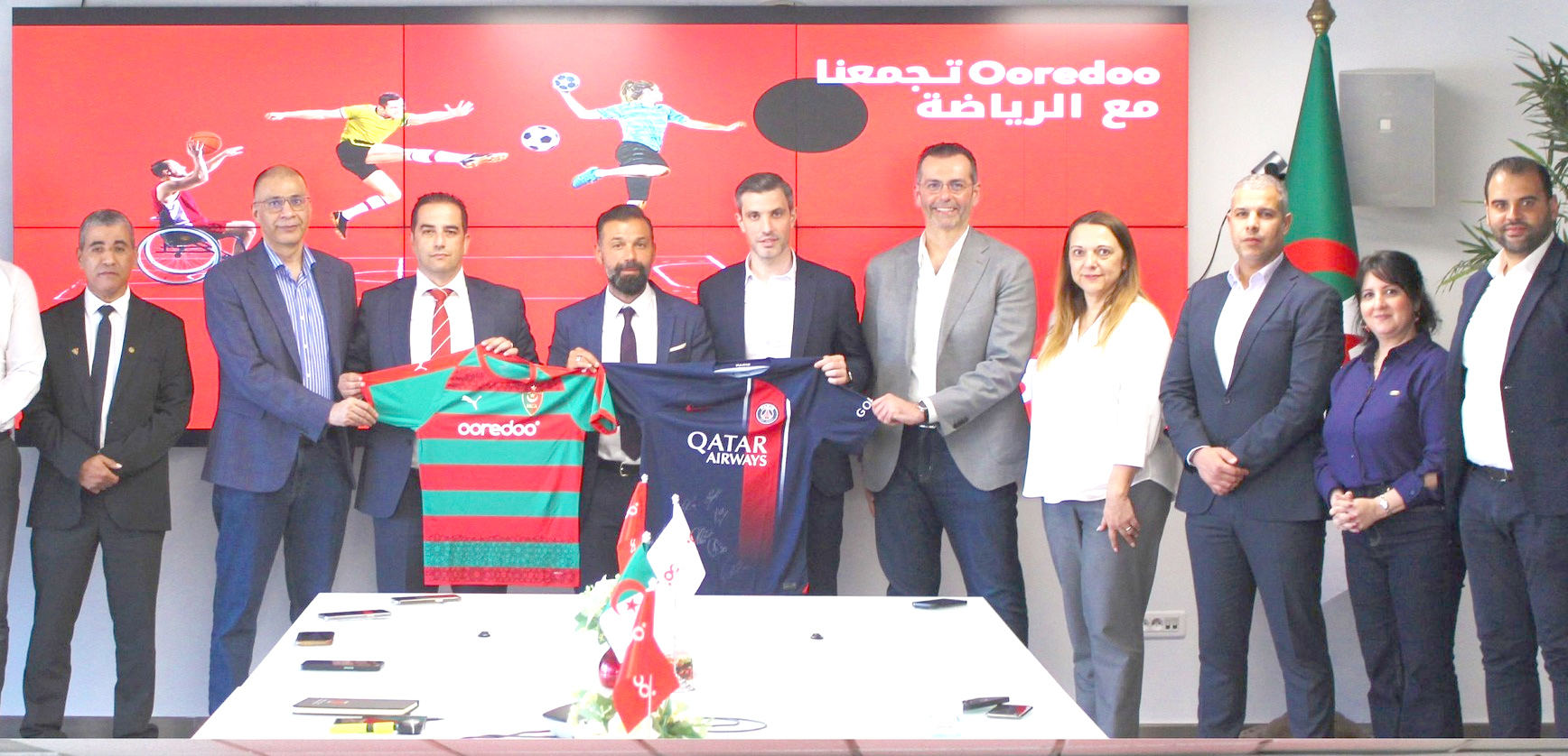Le Mouloudia d’Alger et le Paris Saint-Germain ont officialisé un accord de partenariat facilité par leur sponsor commun Ooredoo. Par l’intermédiaire d’Ooredoo, sponsor du PSG et du MCA, les deux clubs français et algérien ont conclu hier à Alger un accord de partenariat. Le deal vise à contribuer au développement du football notamment au profit des jeunes. Les dirigeants des deux formations s’étaient réunis lundi dans la capitale algérienne avant d’officialiser leur accord. « Cette rencontre a été l’occasion pour Ooredoo et le Paris Saint-Germain d’évoquer leur futur plan de travail et d’éventuelles activités communes avec le Mouloudia, doyen des clubs algériens, et actuel champion de la saison 2023-2024, également sponsorisé par Ooredoo, pour au profit de la jeunesse », indique le communiqué.